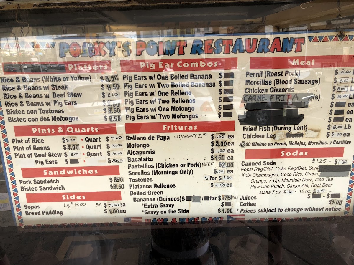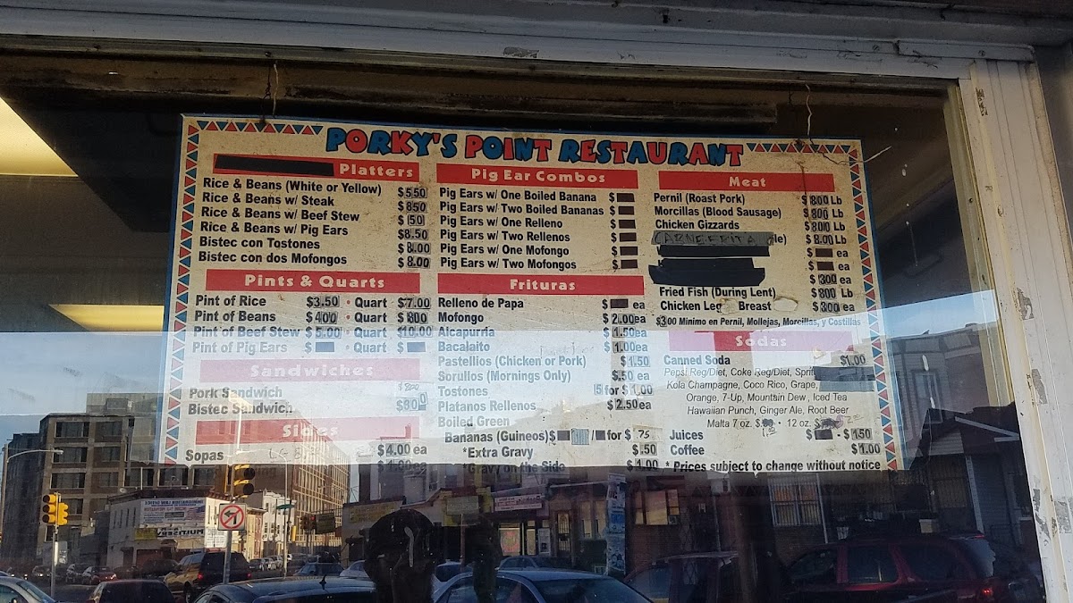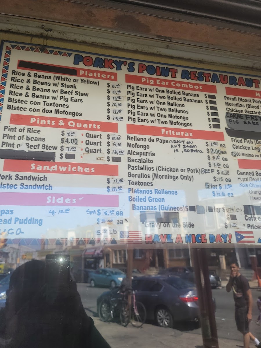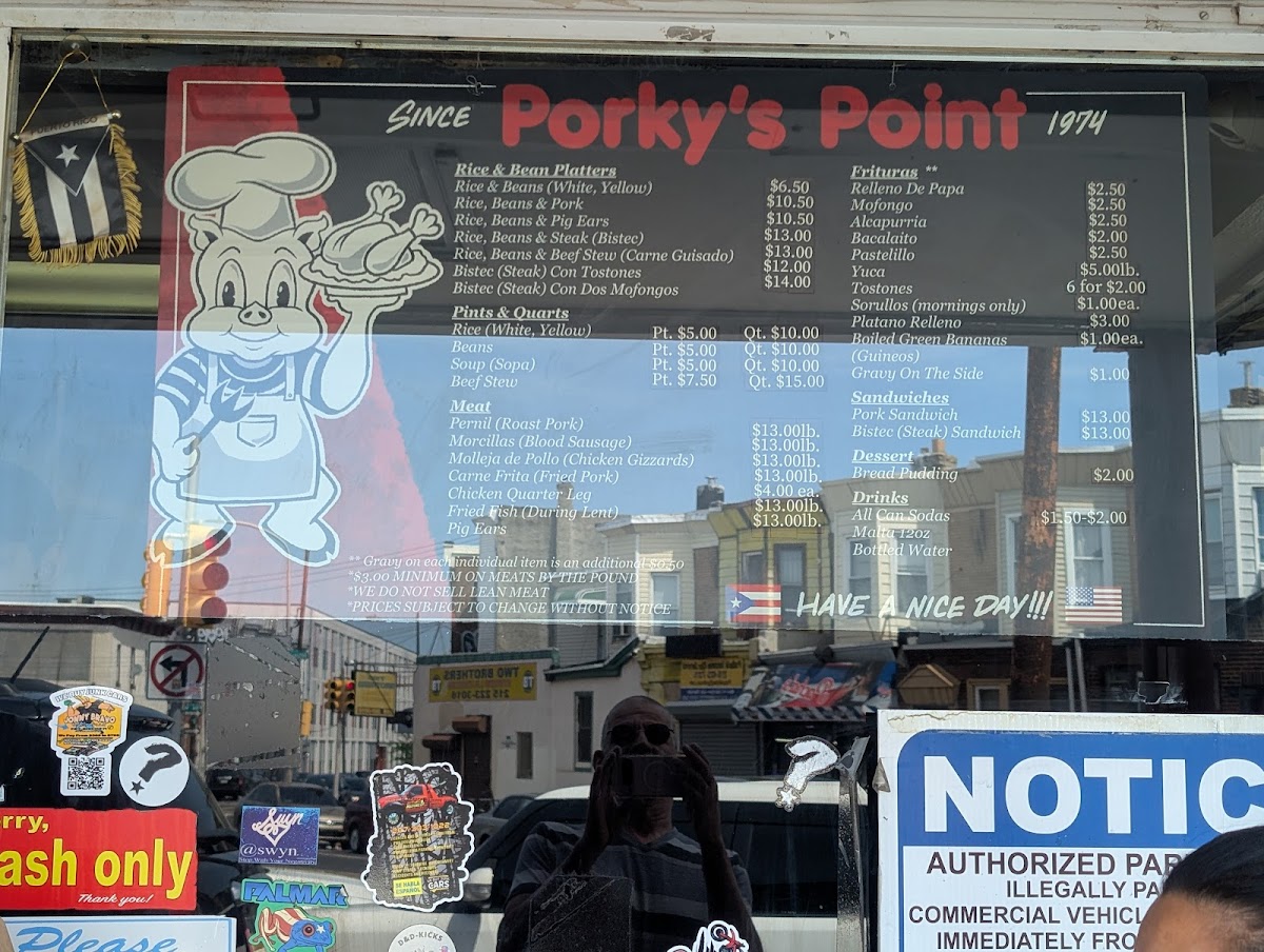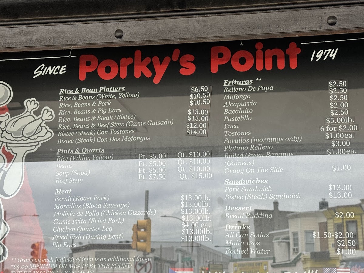 At Porky's Point Restaurant, located in the heart of Philadelphia, Puerto Rican culinary traditions take center stage. The menu features mouth-watering options, including their famous pernil (roast pork) and morcillas (blood sausage), both priced at just $8 per pound. Sandwich enthusiasts can enjoy a hearty pork or bistec sandwich, also available for $8.
